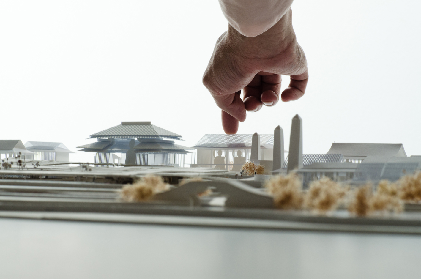 在最後的發想階段,”聚”與“尋”成為兩組主要的空間脈絡。以諸佛神像的群聚為起始,而有人的群聚;人的到來則是在於”尋”,追尋人與人間、人與天界的感應、連結與交流。整體空間需涵容神像群、人群、建築群,而以”園群”的概念統合全體。園林是中國固有的空間形態之一,有別以建築為主體的院落,而以造園之概念來融合建築、景觀與環境,蘊山水之氣於其中,園林本身的情境即為造園之主體;園群則是garden of gardens,將不同的園與以連繫串接甚而彼此滲透,激發”遊園”經驗的更多可能。群園之遊又似是走入不同的山林廟觀,在各自之境界接引不同的天光地氣。以風水之”氣”觀群園,則將各園之”氣”綿延交流聚為一體,而得合暢共振之勢。