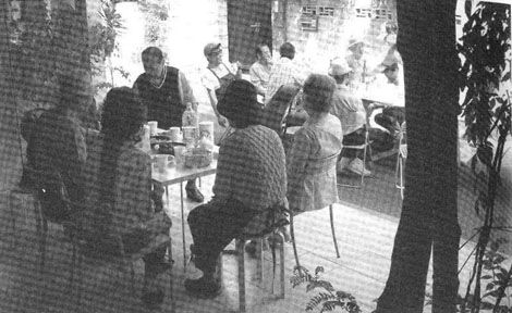 ►睦鄰會的情形 家人習於在開放空間烤肉,此舉也有助於和鄰居們培育出融洽的感情。